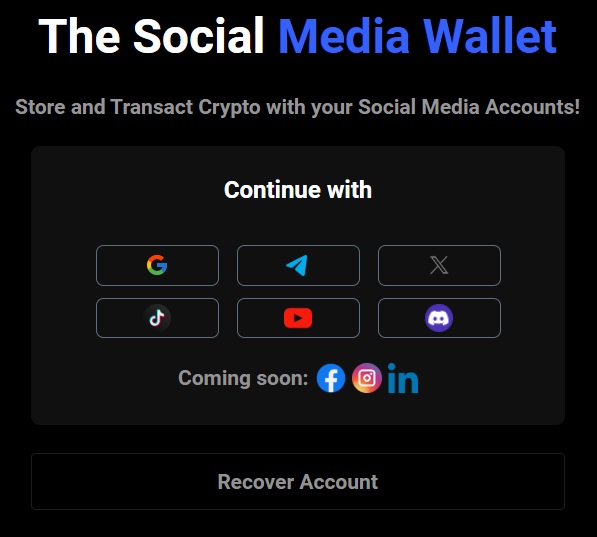 Select the Social Media platform that you wish to use to login - Currently, Gmail, Telegram, Twitter(X), TikTok, YouTube and Discord are available.