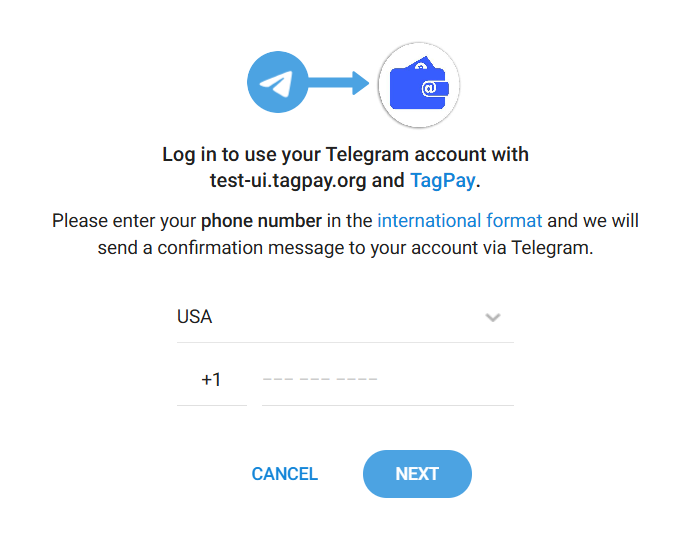 For this example, we will use Telegram to complete the Login process, via the images below.