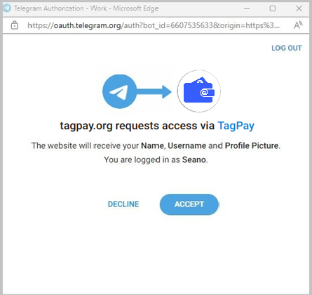 Finally, click the "Accept" button to allow TagPay to link to your Telegram account.